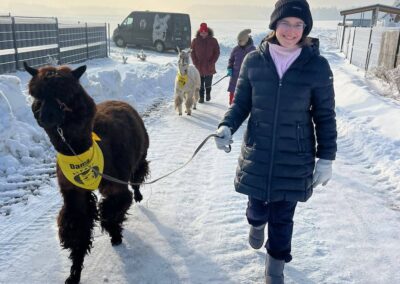 - uczestniczą w zajęciach z alpakoterapii
